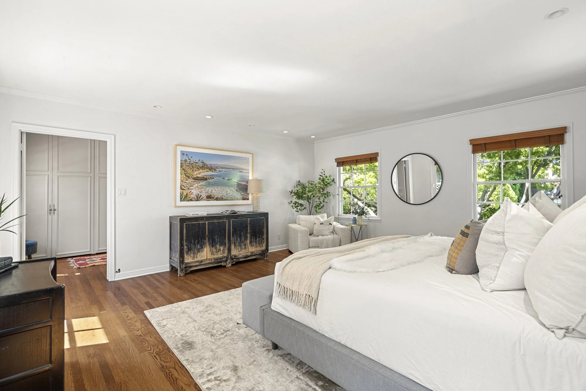 Charming two-story traditional in the coveted west end of The Beverly Hills Flats. Lots of original details juxtaposed with redone kitchen and bathrooms. Large formal living and dining room with den/family room and a large office/maids suite on the main level. Upstairs there are 4 large bedrooms plus a 2nd den/office. The backyard is filled with a grassy lawn and gardens. Great proximity to all the prime shops and restaurants in Beverly Hills, El Rodeo School and The Waldorf Astoria Hotel.